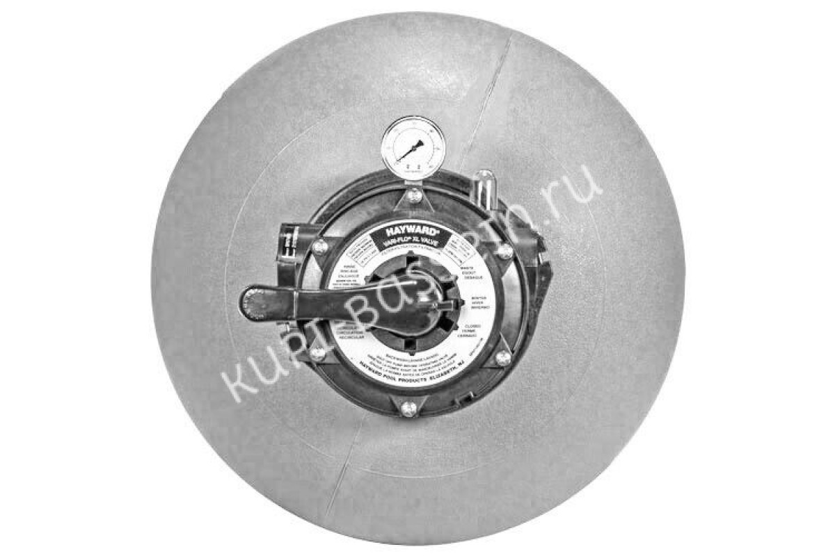 Фильтр оснащен шестиходовым клапаном с верхним типом подключения. Клапан дополнительно оборудован манометром и индикатором мутности. Фильтрующий элемент, который используется в фильтре - кварцевый или стеклянный песок.