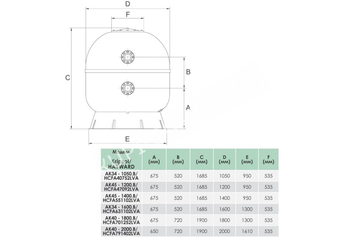 - Диаметр фильтрующей емкости 2000 мм