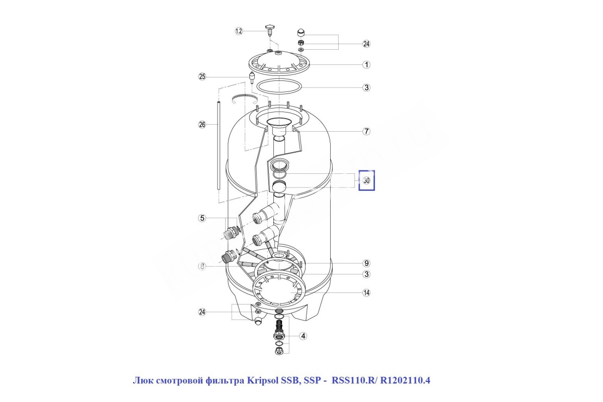 Люк смотровой фильтра Kripsol SSB, SSP - RSS110.R/ R1202110.4/ RCFI0030.00R