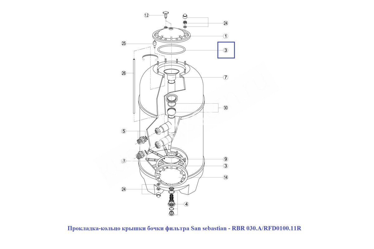 Прокладка-кольцо крышки бочки фильтра San Sebastian - RBR 030.A/RFD0100.11R представляет собой незаменимый элемент для обеспечения надежной и эффективной работы фильтрационного оборудования в бассейне. Это высококачественное изделие, созданное с учетом всех современных стандартов, идеально подходит для использования в системах фильтрации, обеспечивая герметичность и защиту от протечек.