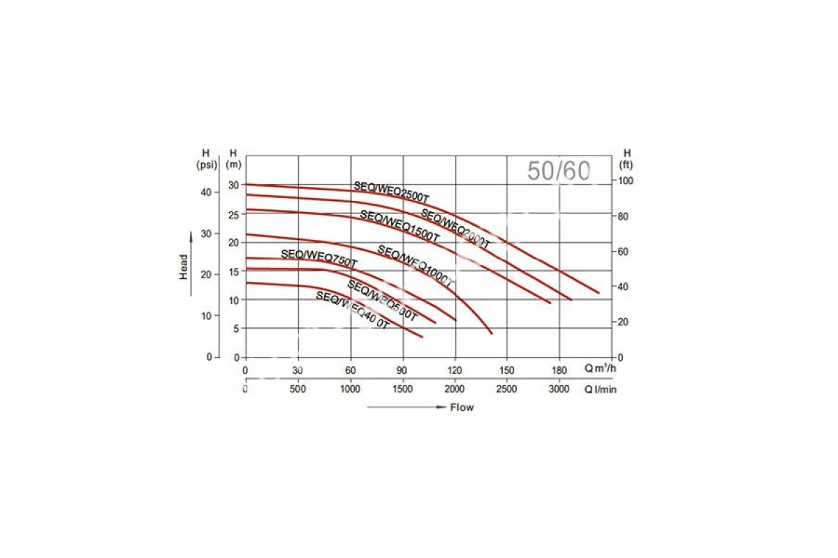 Производительность насосов Aquaviva серий LX SEQ/WEQ