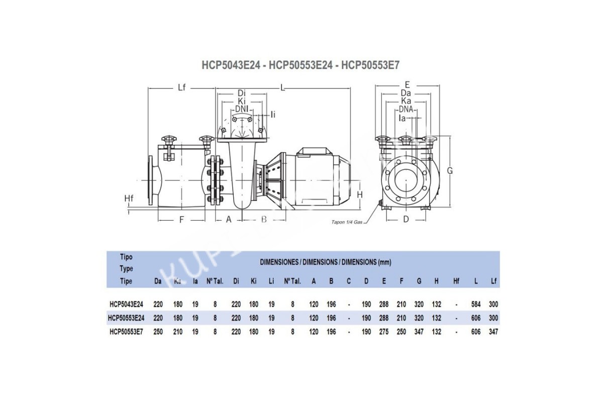 Корпус: чугун GG-22Крыльчатка: бронза, без содержания цинкаКласс защиты насоса: IP55Класс изоляции: FЧастота: 50ГцТок: 16.6А