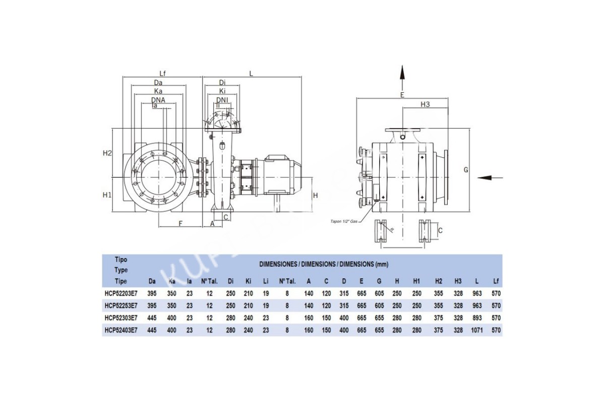 Корпус: чугун GG-22Крыльчатка: бронза, без содержания цинкаКласс защиты насоса: IP55Класс изоляции: FЧастота: 50ГцТок: 27.3А