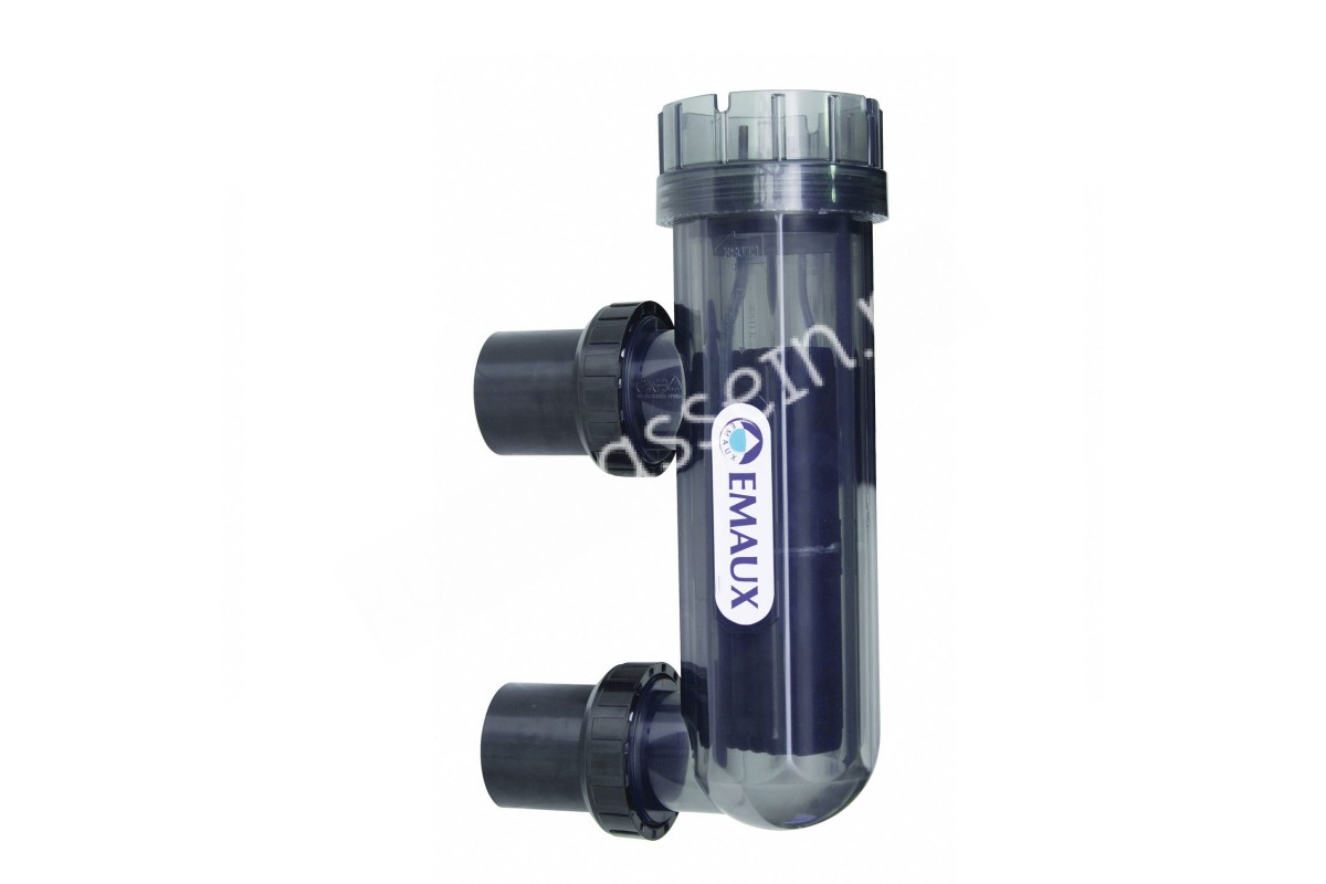 Ячейка выполнена из прочного просматриваемого пластика, что позволяет контролировать состояние электродов из титана, которые нуждаются в систематическом осмотре и очистке. Минимальное количество соли для начала дезинфекции должно составлять 4000 РРМ (пример: 1 м³ воды х 3.9 кг соли).
