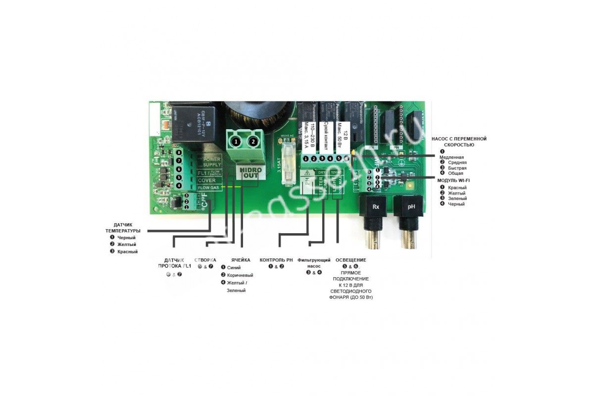 – осуществляет учет и контроль окислительно-восстановительного потенциала. На основании полученных данных от redox датчика, станция регулирует работу титановой ячейки.