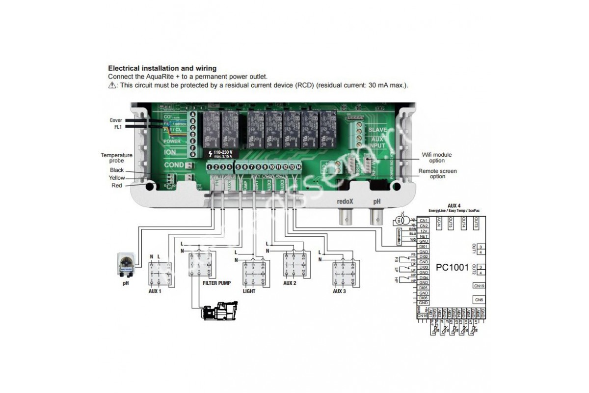 В зависимости от опционального расширения, AquaRite Plus способна регулировать уровень pH, ORP и свободного хлора воды. Также станция самостоятельно управляет как основным, так и дополнительным оборудованием. Присутствует возможность настройки температурного режима и удаленного Wi-Fi управления, с любой точки планеты.