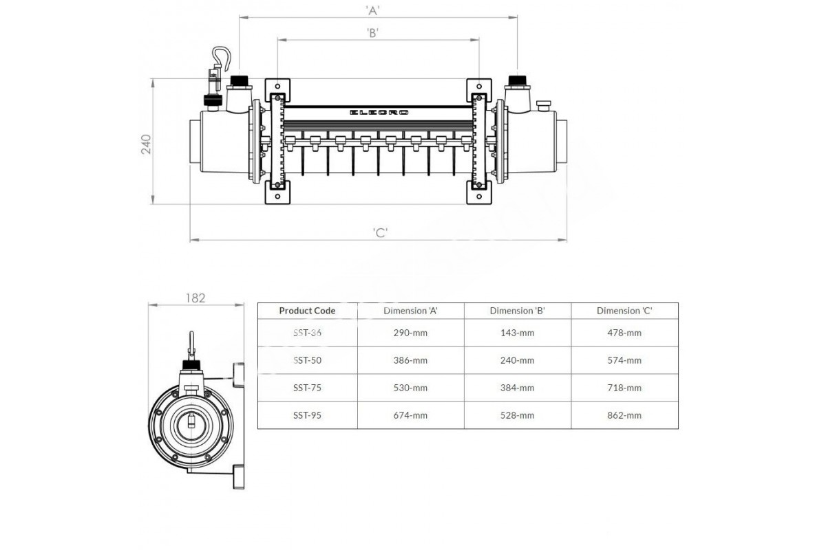 Основу корпуса теплообменника Elecro SST-36 составляет специальный полимер, который в отличие от стали, абсолютно не подвержен коррозии или солевому разрушению. Поэтому модель может ставиться для нагрева настоящей морской воды. Титановая спираль полностью погружена в проточную колбу и обеспечивает максимальную площадь теплопередающей поверхности с незначительными тепловыми потерями. Дизайн теплообменника способствует высокой эффективности при умеренной нагрузке на контур циркуляции. Вихревое движение воды позволяет снизить до минимума образование налета на нагревательных элементах.