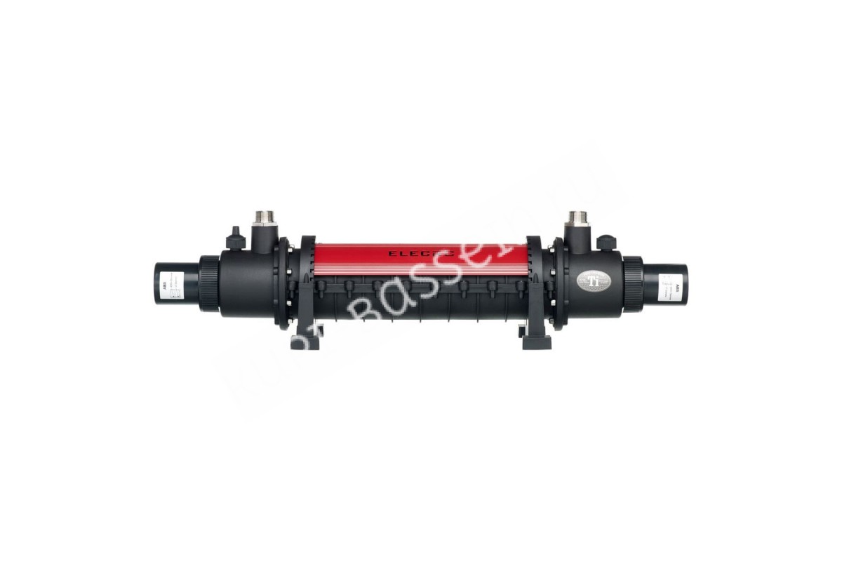 В отличие от стальных корпусов предыдущих моделей, данная серия теплообменников использует сплав из специального полимера. В результате риски появления коррозии или солевого разрушения значительно снижаются. Теплообменник Elecro SST-95 отлично подойдет для нагрева бассейнов с морской водой. Титановая спираль полностью погружена в проточную колбу и обеспечивает максимальную площадь теплопередающей поверхности с незначительными тепловыми потерями. Дизайн теплообменника способствует высокой теплопередаче без лишней нагрузки на систему фильтрации/циркуляции бассейна. Движение воды по турбулентной траектории снижает процент образования минеральных отложений на тэнах.