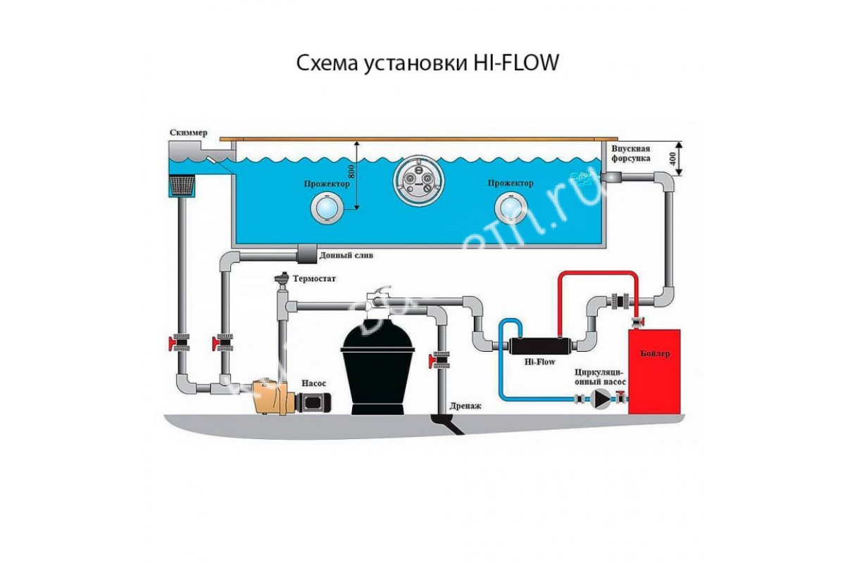 Предназначен для нагрева воды и поддержания заданной температуры в бассейне агрессивной средой (морская вода). Изготовлен из титана, что позволяет применять устройство в бассейнах с соленой водой или солевым электролизом. Кронштейны изготовлены из кислотостойкой нержавеющей стали марки AISI-316L. Подходит для любого типа инсталляций (котлы, тепловые насосы, солнечные панели и др.). Теплообменник оборудован спиралью для нагрева воды, что позволяет его использовать в системах с высоким давлением. Теплообменник титановый Pahlen представляет собой монолитный сварной кожух, в котором установлен нагреватель-змеевик через который с помощью насоса вода из бассейна попадает в теплообменник. При контакте воды со змеевиком происходит передача тепловой энергии и вода в бассейне нагревается. Если температура воды становится выше установленного значения на термостате, срабатывает автоматическая блокировка подачи воды в теплообменник.