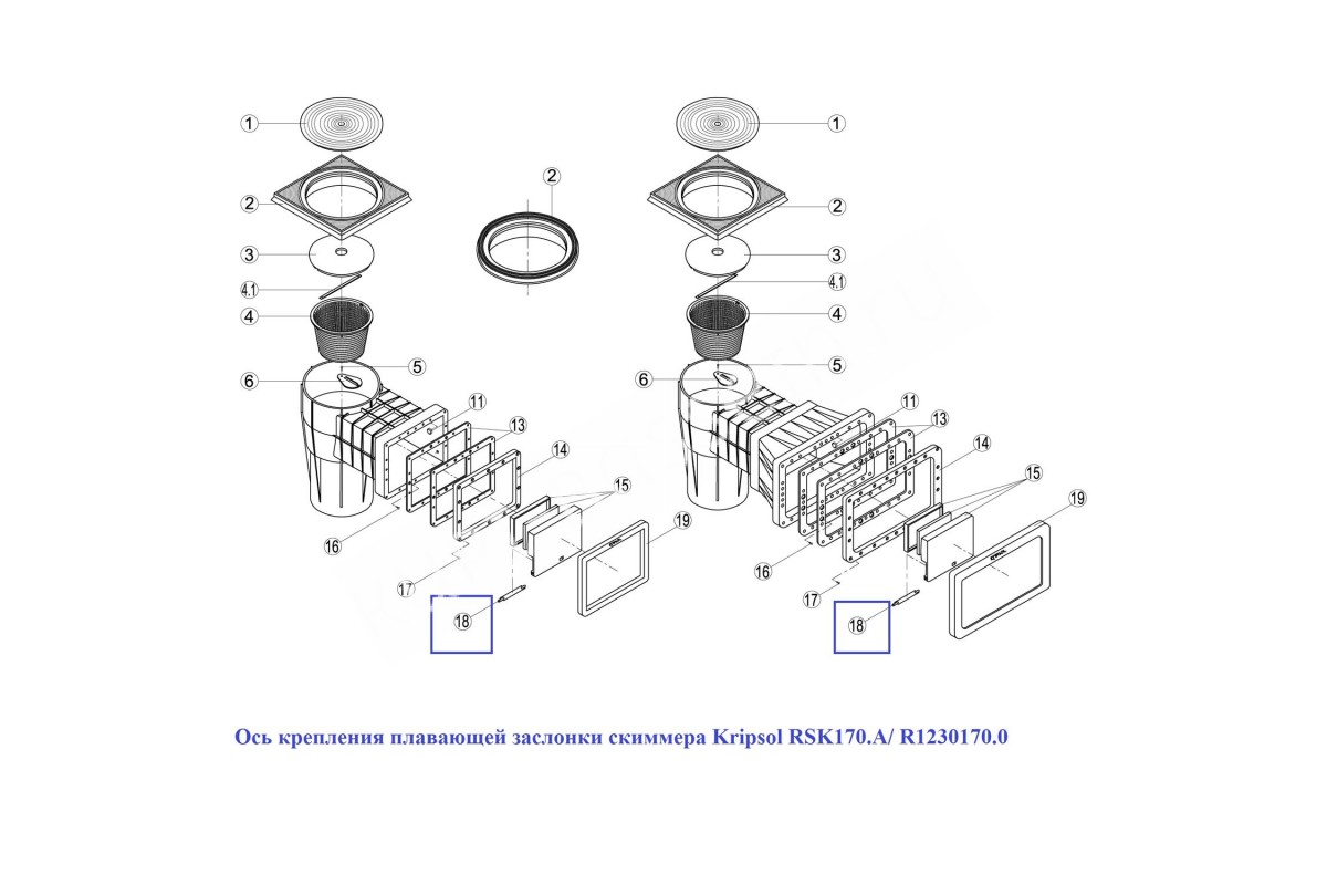 Ось крепления плавающей заслонки скиммера Kripsol RSK170.A/ R1230170.0