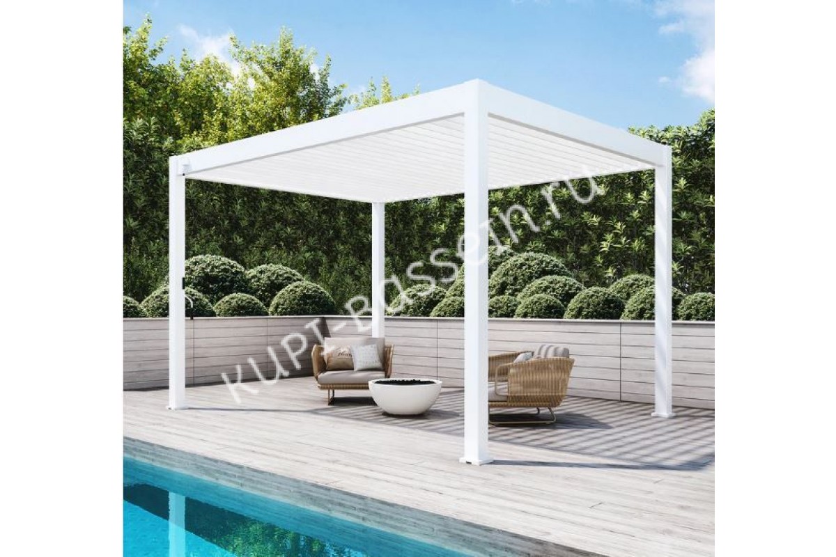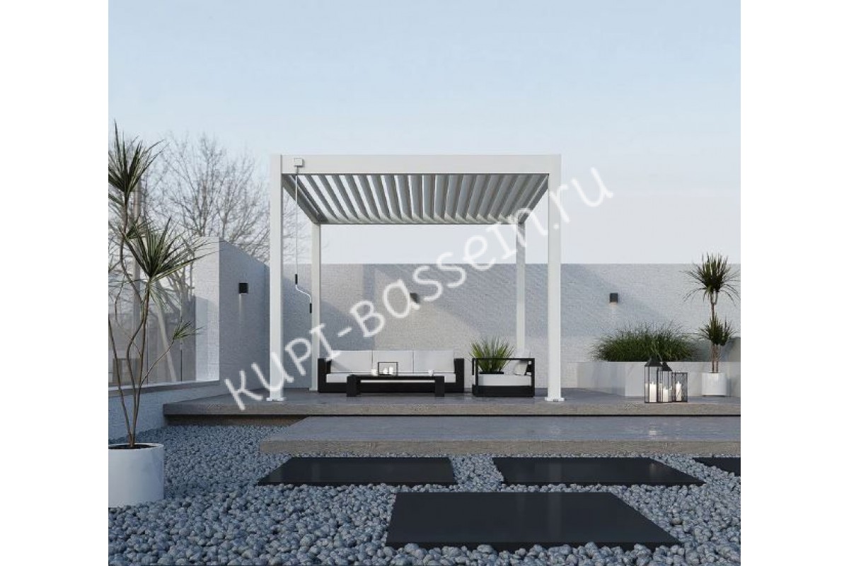 Пергола Aquaviva Модерн отдельностоящая (ламели с электроприводом) 4X3м RAL 9016 (Белая)