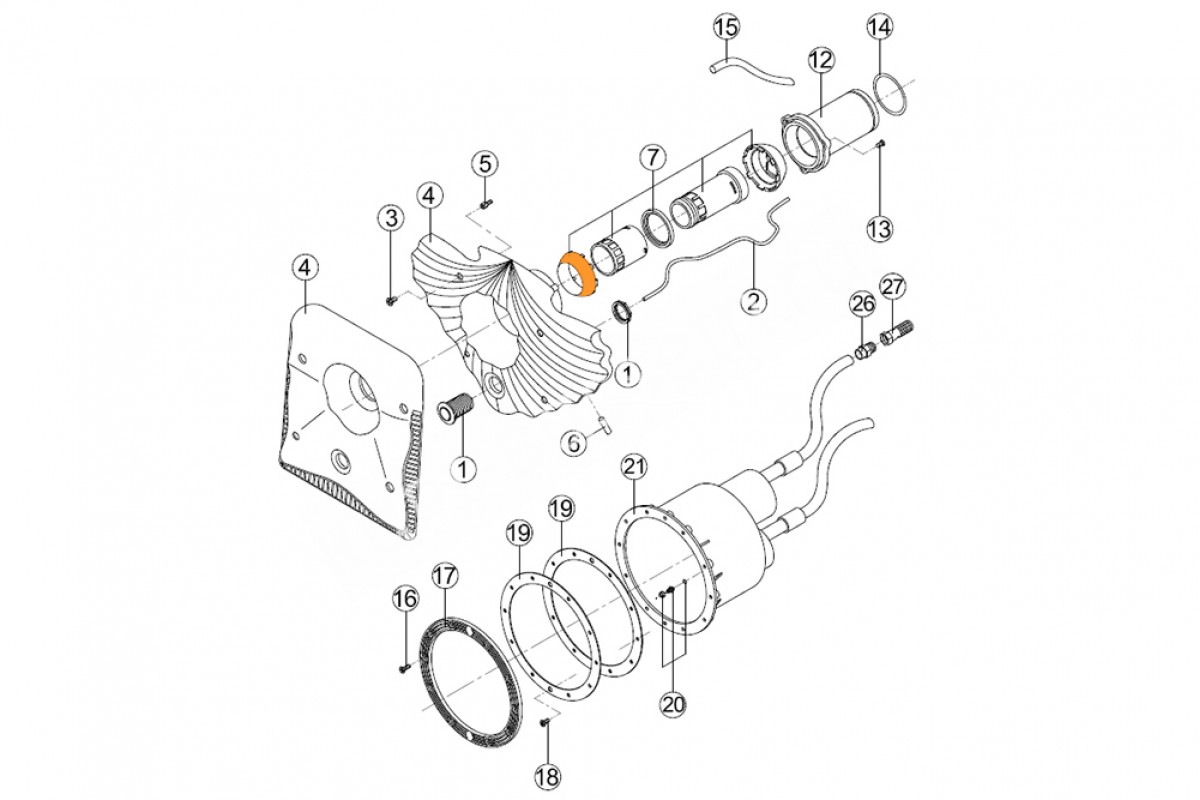 Поз. на схеме выделена оранжевым цветом - Полусфера (внешняя) шарнира сопла противотока HIDROJET Kripsol, Альтернативное название Внешний шар сопла для противотока Kripsol RCC007.A