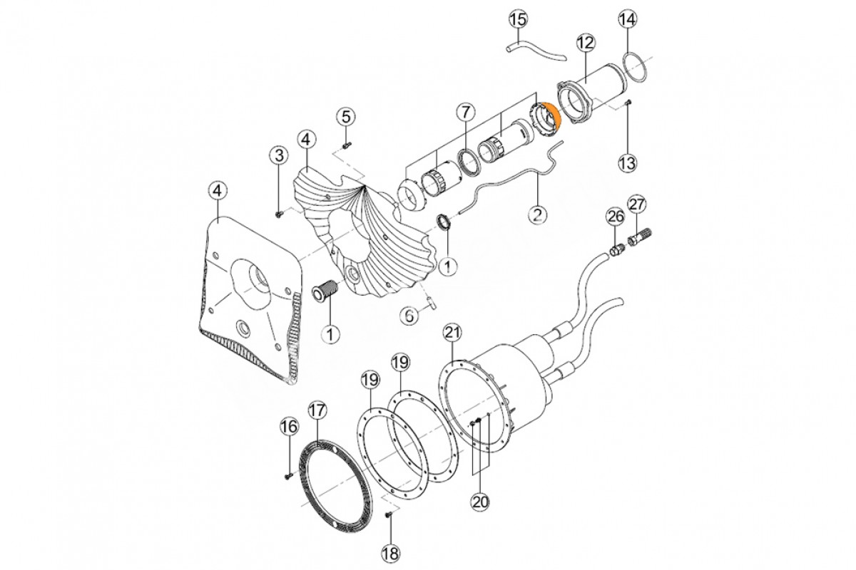 Поз. на схеме выделена оранжевым цветом - Полусфера (внутренняя) шарнира сопла противотока HIDROJET Kripsol, Альтернативное название Внутренний шар сопла для противотока Kripsol RCC011.A
