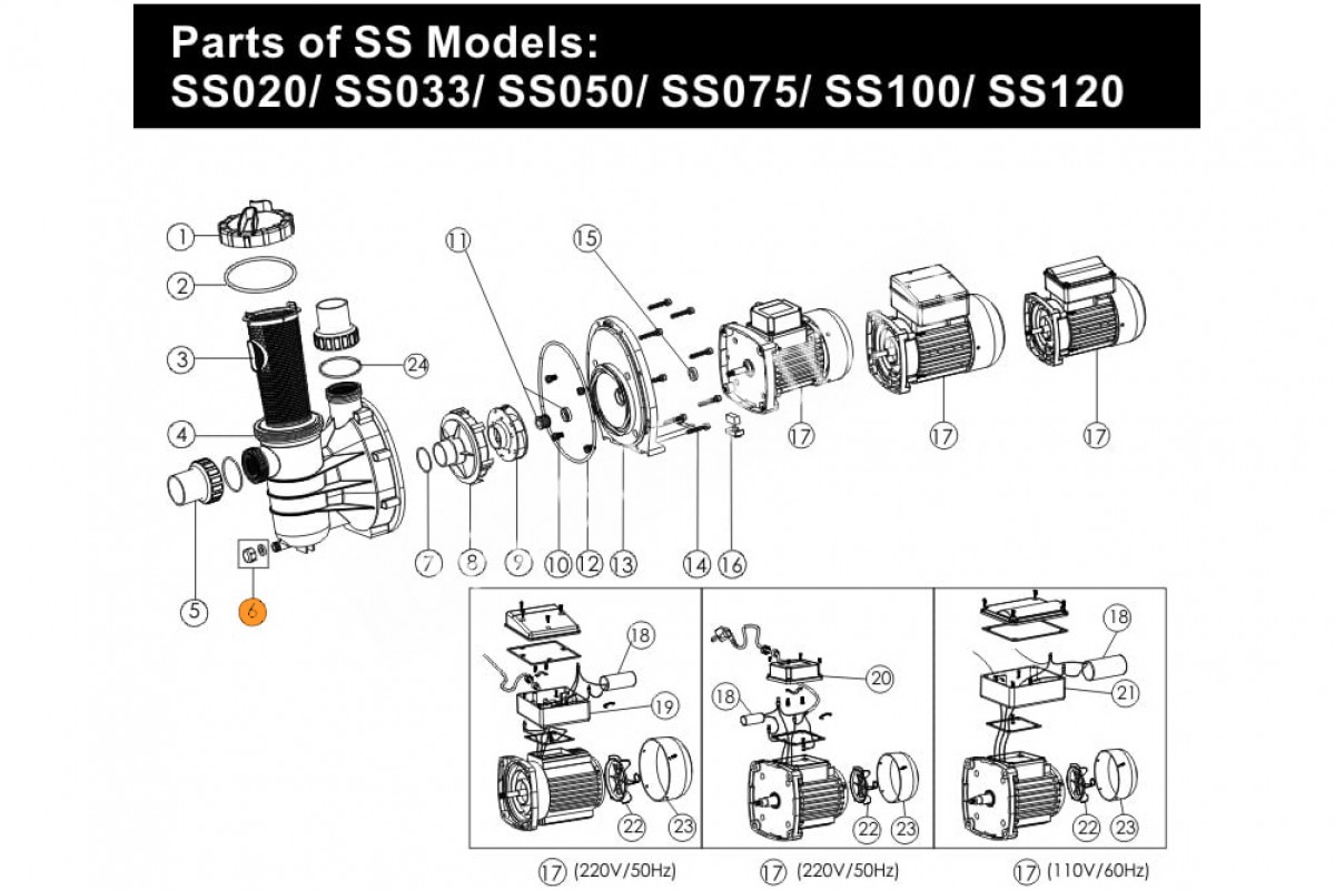 Поз. №6 - Пробка сливная с прокладкой насоса SS Emaux