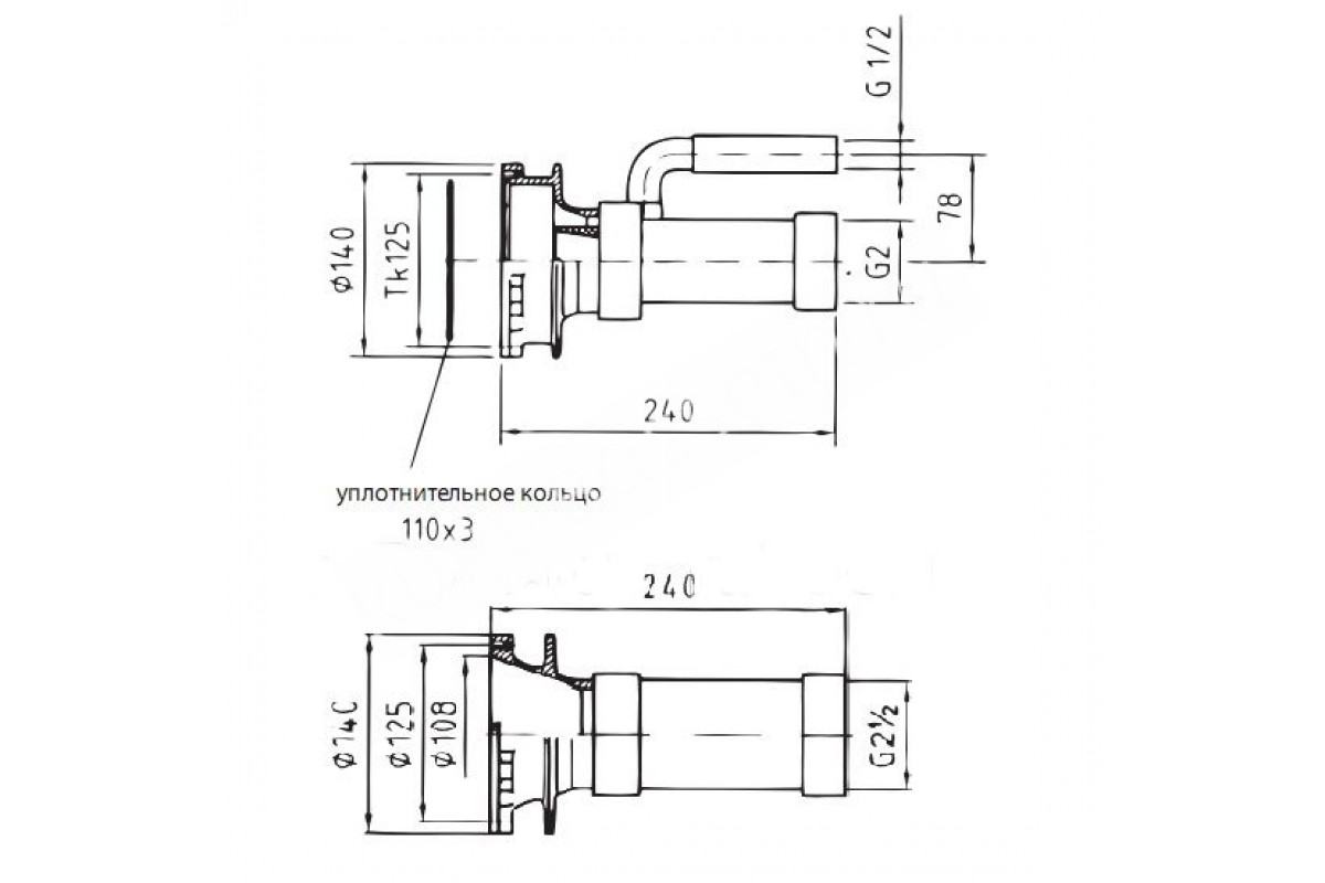 Проходы стеновые Fitstar 8640050 для Combi-Whirl, 3 форсунки, 2 водозабор, 240 мм