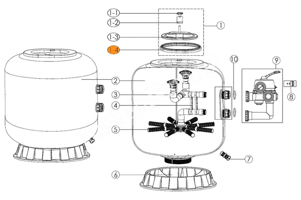 Поз. №1-4 - Прокладка-кольцо фланца бочки фильтра Emaux S-1000 - S1200