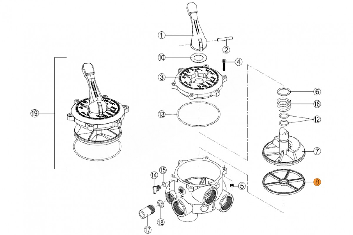 Поз. №8 - Прокладка переключения режимов (фигурная) 6-ти поз. вентиля (2") Kripsol, Альтернативное название Спайдер Kripsol 2" RVS208.A/ R1210085.0