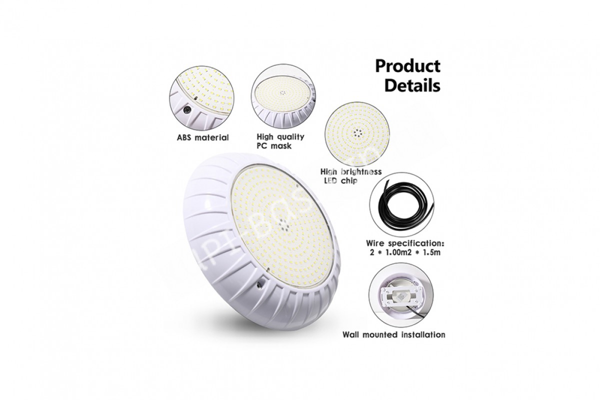 Прожектор накладной (35Вт/12В) LED Warm white Tadpole JKD-YC220-AP - накладной прожектор для бассейнов и SPA от компании Tadpole — это качественное и надёжное решение для освещения. Корпус выполнен из ABS пластика и обеспечивает яркое освещение, создавая уютную атмосферу.