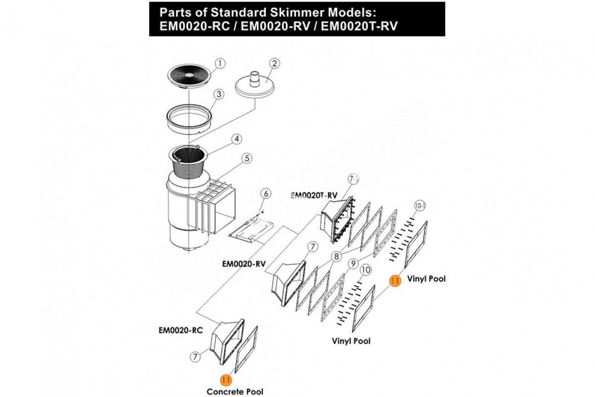 Поз. №11 - Рамка декоративная скиммера Emaux EM0020V, Альтернативное название Лицевая накладка Aquaviva скимера Standard EM0020 1051046