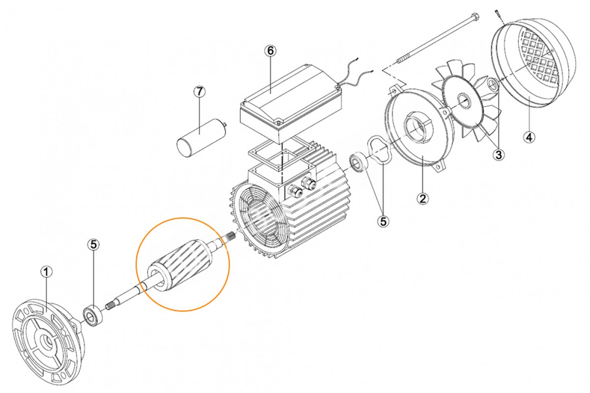 Поз. обведена кругом - Ротор двигателя насоса ОК-33 (220В) с 2-мя подшипниками 6202 Kripsol
