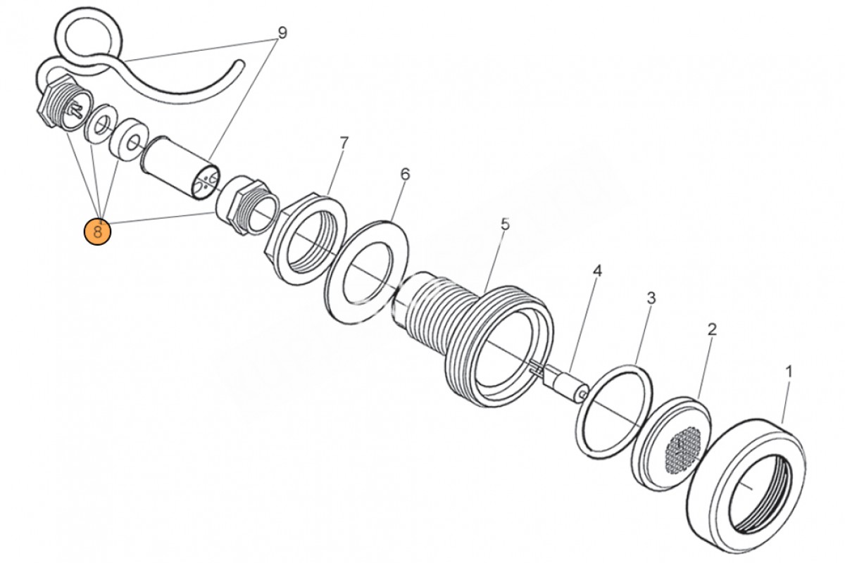 Поз. №8 - Сальник для герметизации кабеля прожектора для гидромассажных ванн из нерж.стали Pahlen