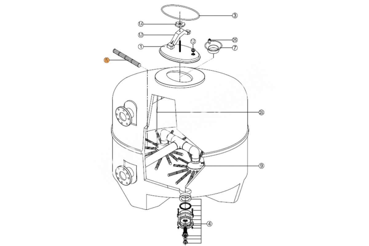Поз. №8 - Сепаратор фильтра (760мм) Balear Kripsol L170мм, Альтернативное название Дюзa для фильтра AK Kripsol/VASO Ø 800 RCFI0008.02R