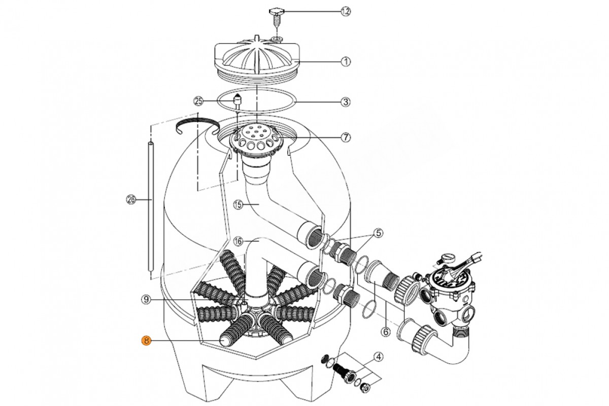 Поз. №8 - Сепаратор фильтра BL, BR, AK, SSB (900) (на защелках) Kripsol (длинна L 320mm)