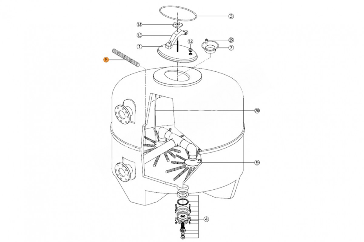 Поз. №8 - Сепаратор фильтра BRASIL Kripsol, Альтернативное название Дюзa для фильтра AK Kripsol/VASO Ø 1400 RCFI0008.08R, Сепаратор фильтра 540mm Kripsol BM1400 - R854BC.A/ RFD0114.10R.