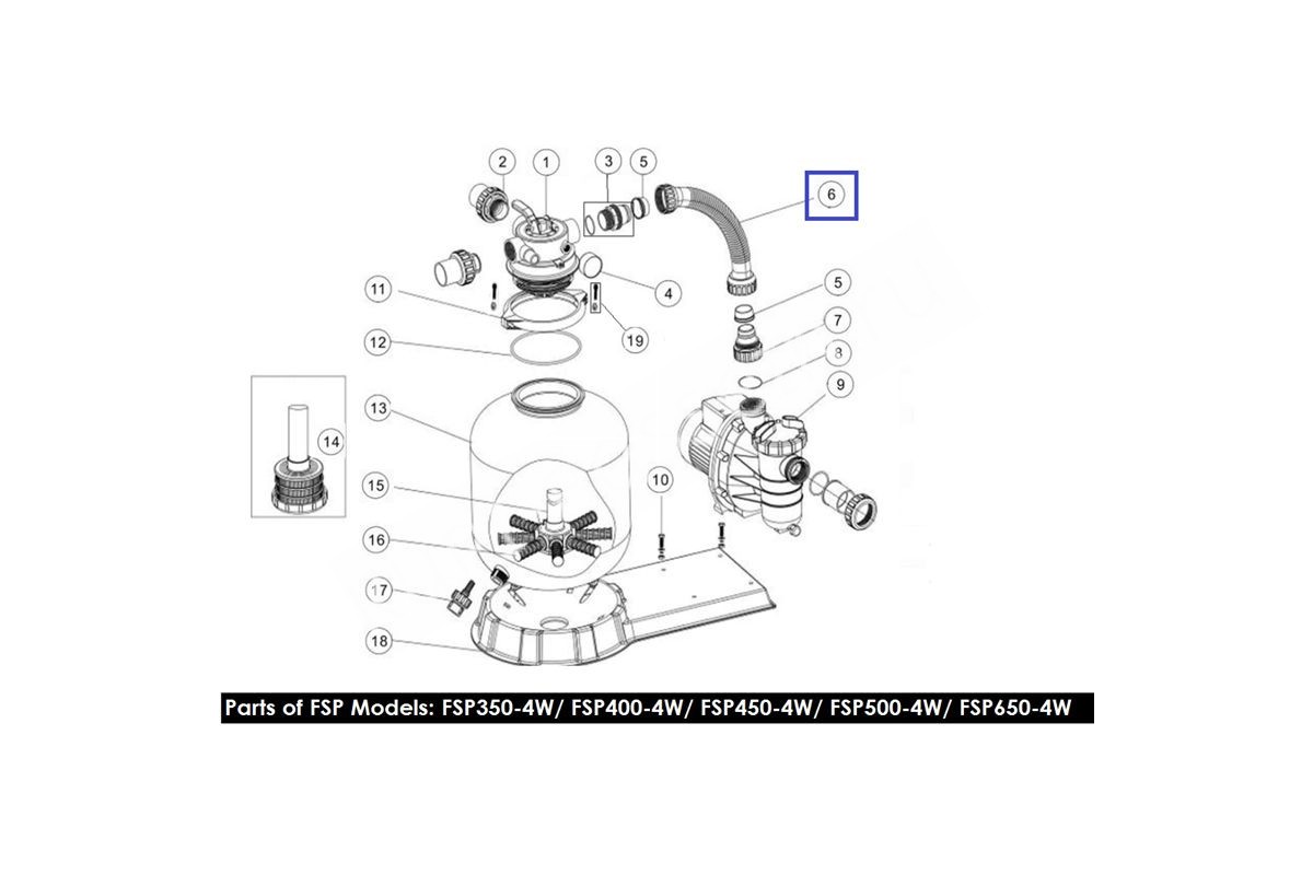 Шланг подключения с муфтами для ф/у Emaux FSP500-4-Way (89030601)