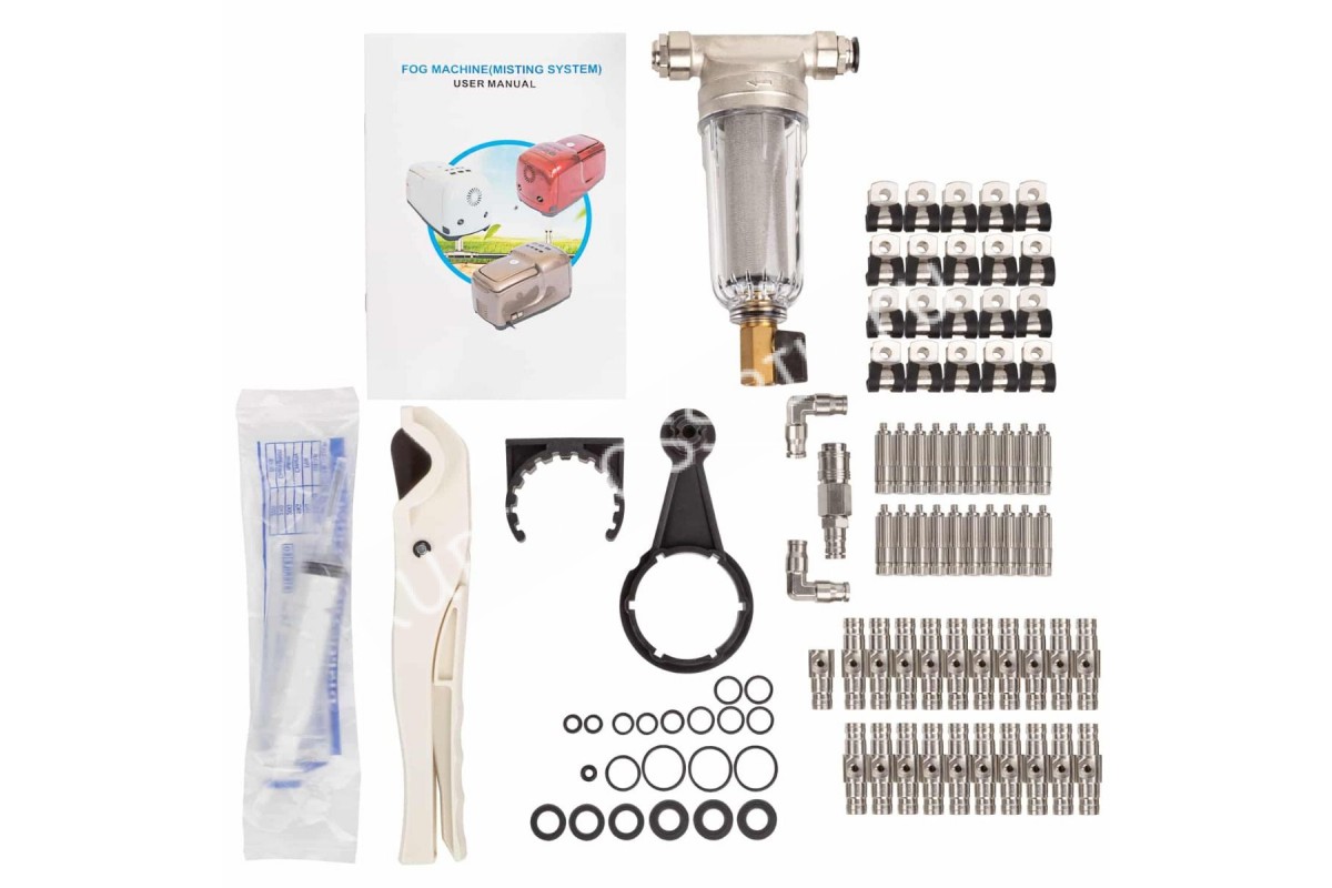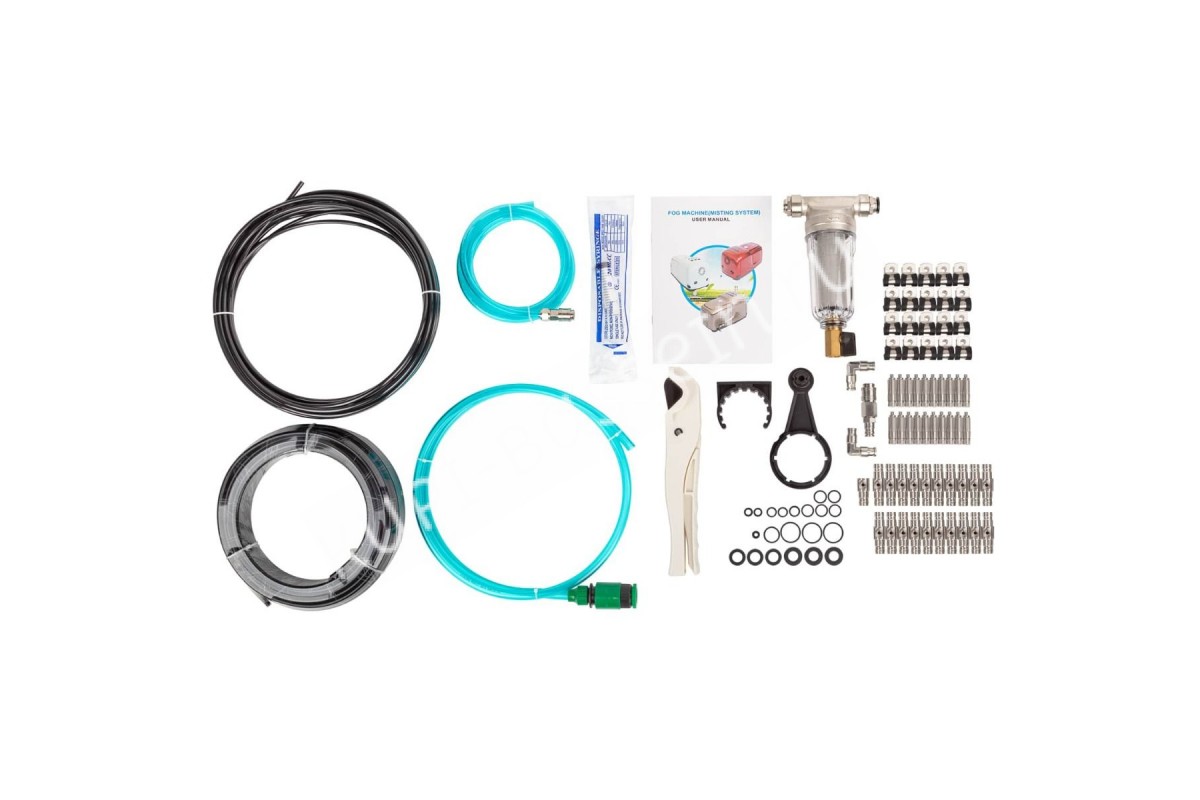 Система туманообразования состоит из гибкого ПВХ шланга, форсунки из нержавеющей стали и портативного насосного модуля, устойчивого к коррозии. Также устройство оборудовано рядом защитных систем для более надежной и длительной эксплуатации.