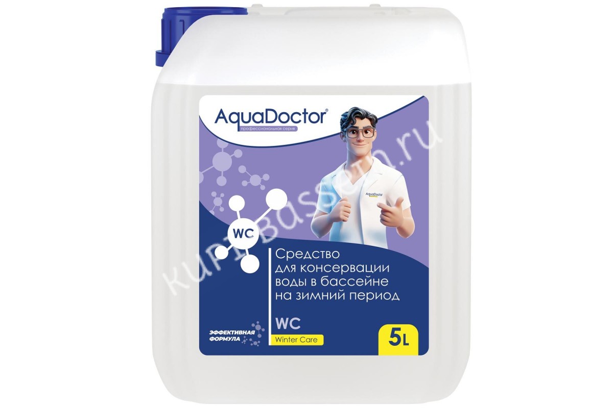 Препарат AquaDoctor WC добавляется в начале процесса консервации бассейна из расчета 60-70 мл на 1 м³ воды. Необходимое количество препарата разводится в чистой емкости с водой и добавляется по периметру бассейна.