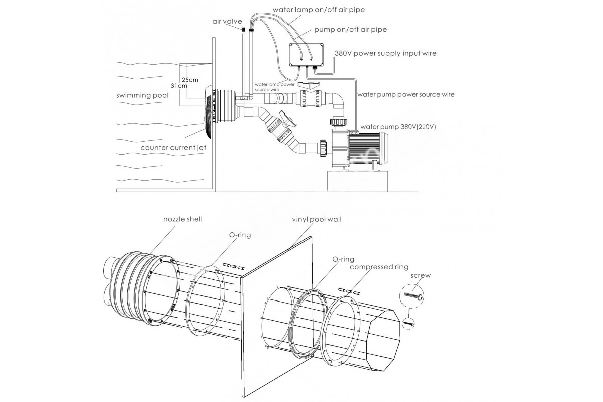 Полностью готовая система встречного течения для бассейна