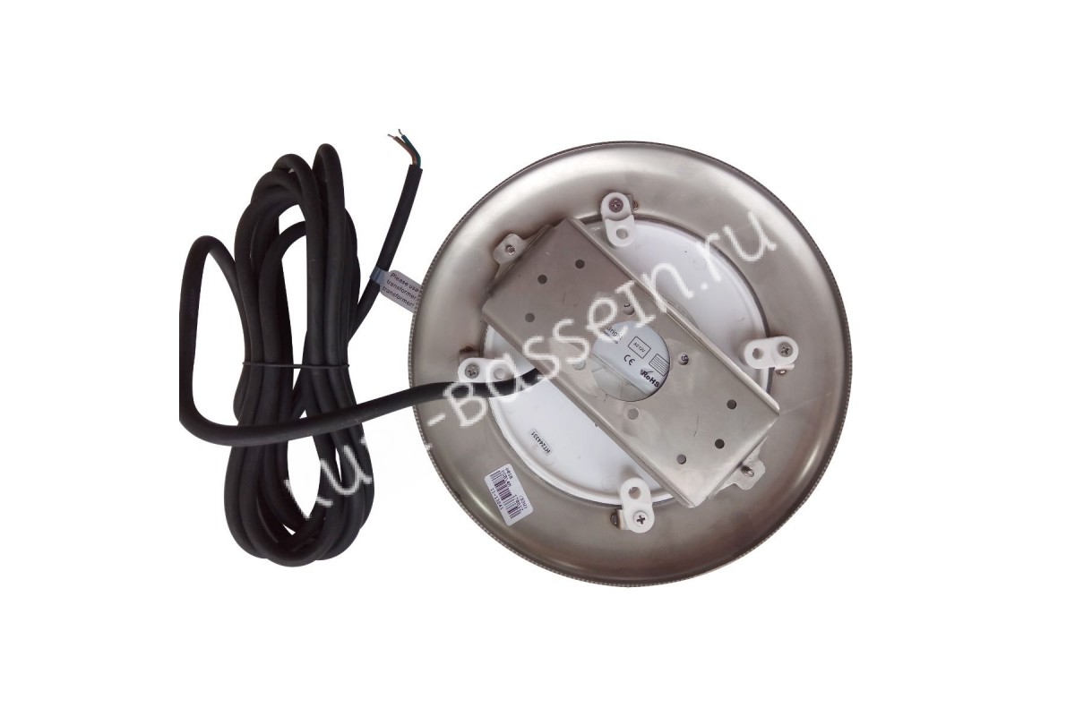 Габариты прожектора составляют 260х30 мм. Корпус изготовлен из нержавеющей стали 316 марки. Модель обладает повышенными антикоррозийными параметрами, не боится UV. Может работать в бассейне который очищается установками электролиза соли. Сталь толщиной 2 мм гарантирует механическую прочность изделия. Прожектор будет органично смотреться в любом бассейне и гарантирует яркое цветное освещение. Накладная рамка позволяет легко прикрепить фонарь к поверхности чаши и также легко снять его. Для скрытия лишнего провода на плате имеются специальные крючки.