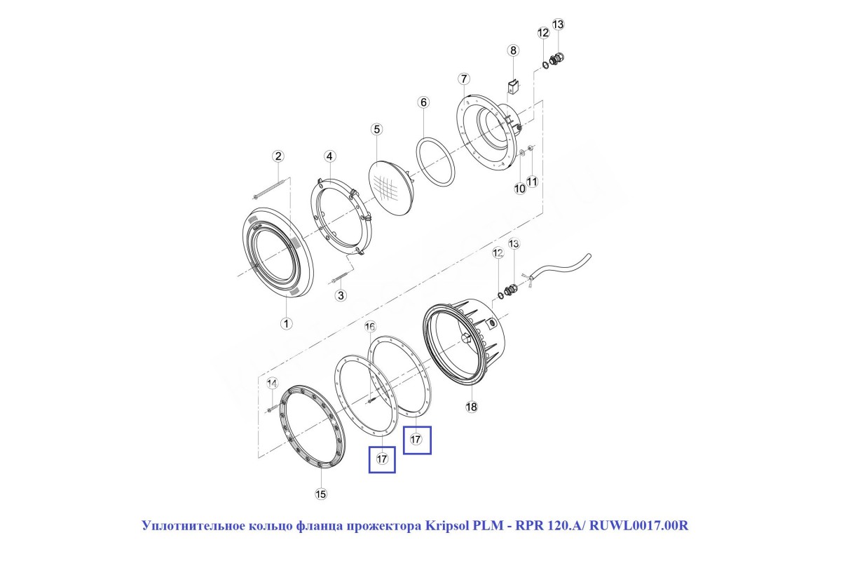 Уплотнительное кольцо фланца прожектора Kripsol PLM - RPR 120.A/ RUWL0017.00R представляет собой высококачественный аксессуар, предназначенный для надежного соединения фланцевых частей светодиодных и галогенных прожекторов в системах освещения бассейнов. Это кольцо обеспечивает герметичность и защиту от проникновения воды, что особенно важно для эксплуатации оборудования в условиях повышенной влажности.