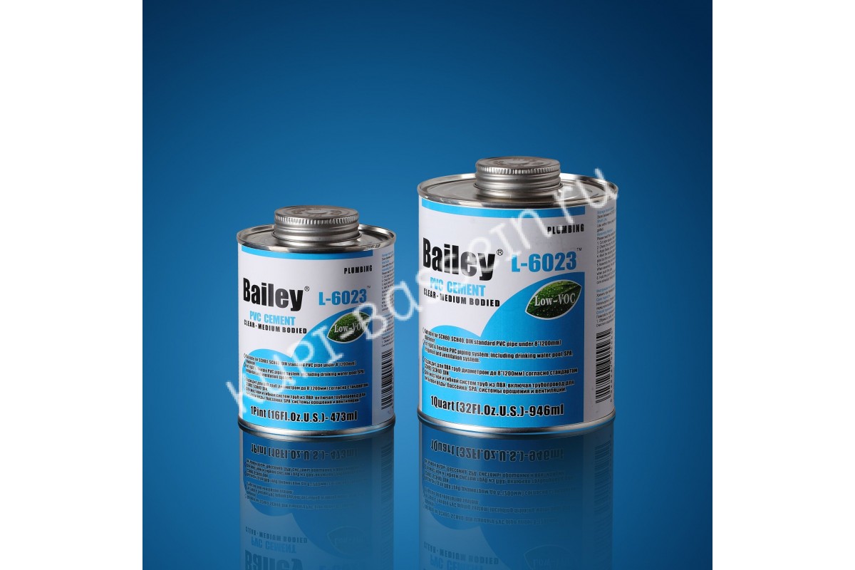 Клей Bailey L-6023 рекомендован для труб из ПВХ диаметром до 8” (200 мм) и ПВХ-листов среднего размера, согласно стандартам SCH 80, SCH 40, DIN. Эффективен для гибких и жестких систем ПВХ трубопроводов, бытового и промышленного назначения.