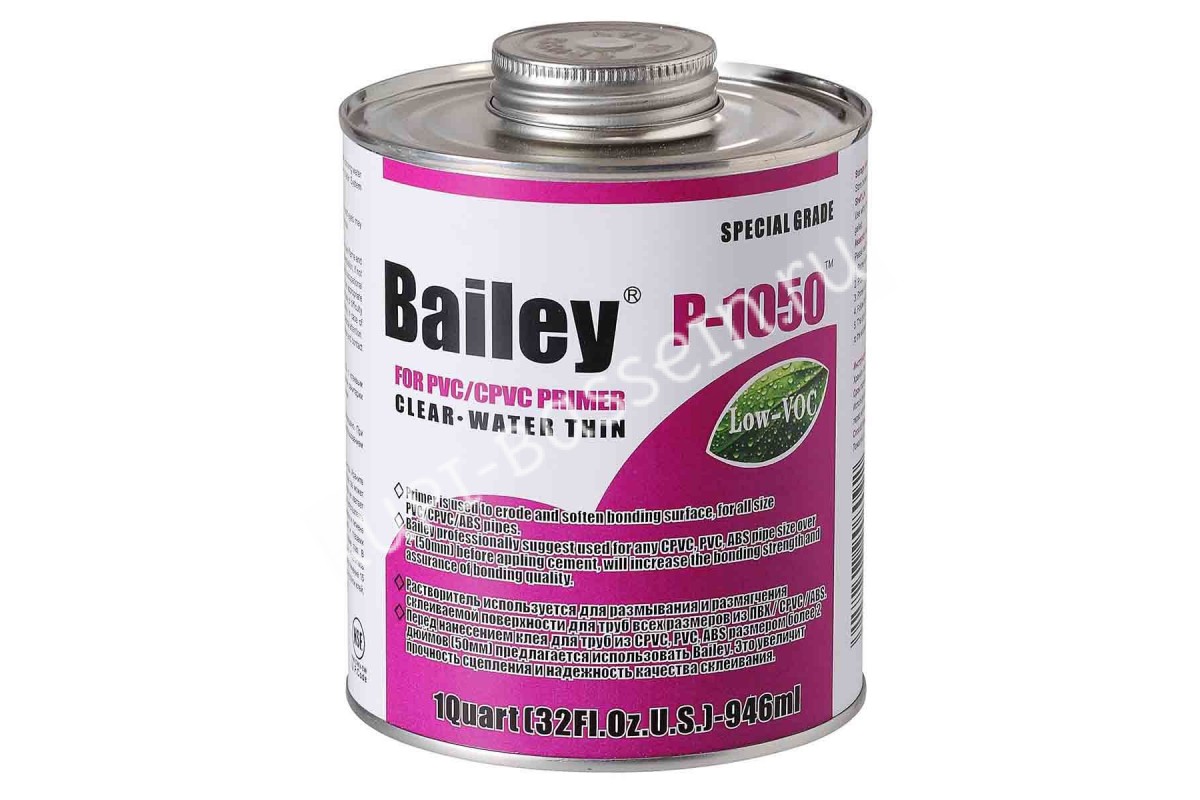 Очиститель (праймер) Bailey P-1050 рекомендован для труб и соединительных фитингов всех размеров из ПВХ, ХПВХ и АБС. Праймер усиливает эффективность клея для ПВХ, обеспечивает оптимальные результаты склейки и уменьшает риск образования конденсата. Фиолетовый цвет упрощает идентификацию при нанесении на соединительные поверхности.