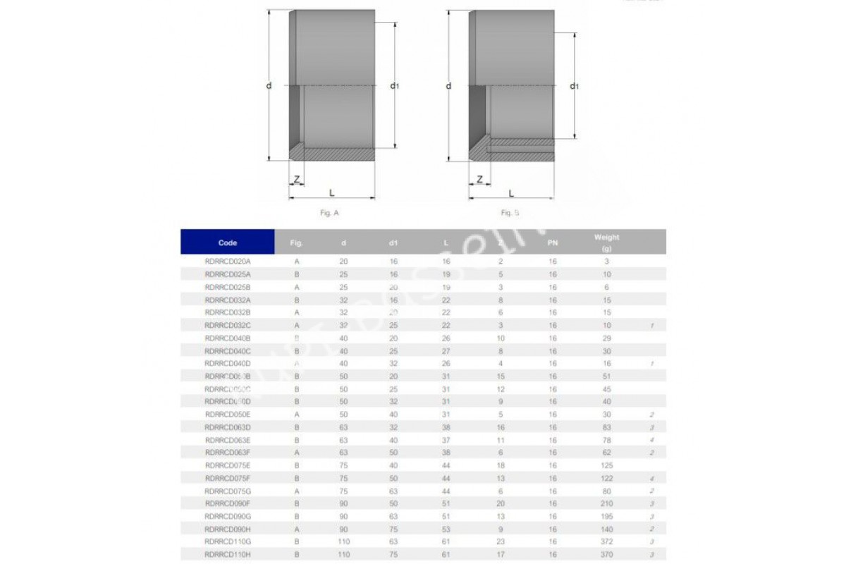 Муфта RDRBOD используется для клеевого соединения концевых отверстий элементов трубопровода с одинаковым диаметром. Деталь также может выступать точкой ввода дополнительных узлов.