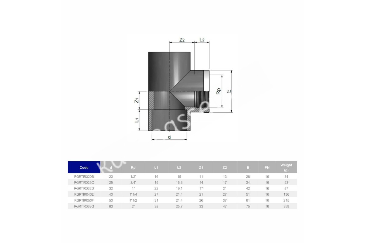 Тройник RGRTIR 90˚ с внутренней резьбой
