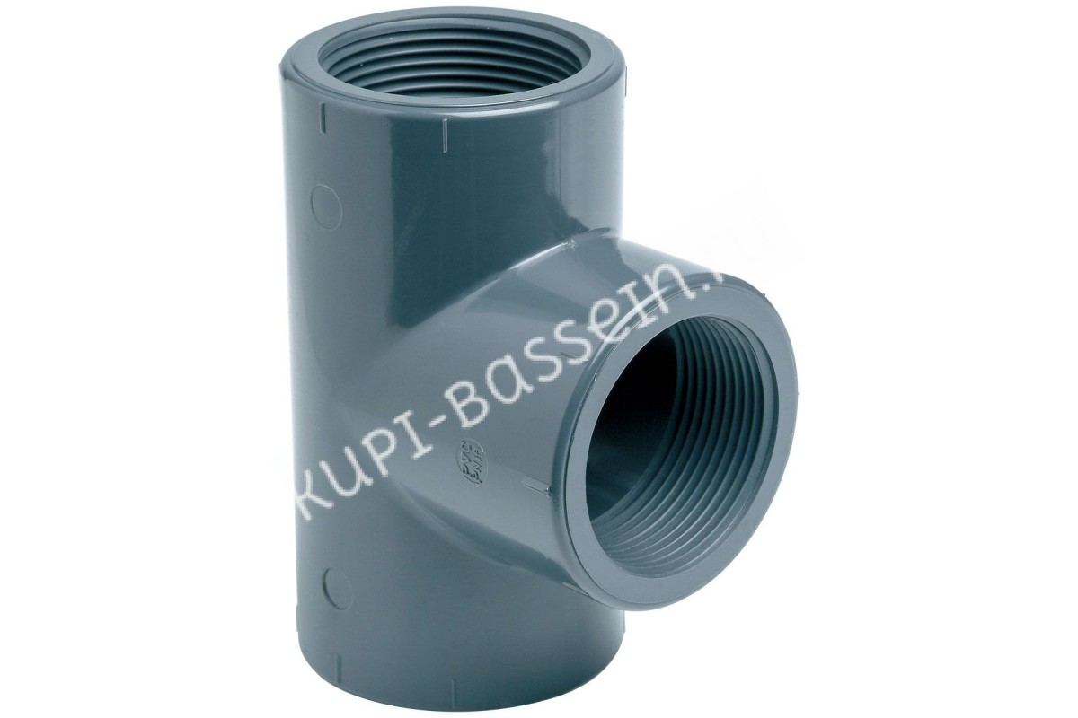 Угол в 90° позволяет легко изменять направление трубопровода, что делает установку более гибкой и удобной. Внутренняя резьба, имеющая размер d1/2", обеспечивает возможность подключения различных устройств и труб, что делает тройник универсальным элементом в системе. С помощью данного фитинга можно легко организовать разводку трубопроводов, что особенно актуально для бассейнов, где необходимо учитывать различные элементы системы фильтрации и подогрева воды.