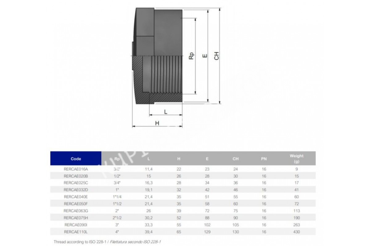 Заводской артикул: RERCAE075H Рабочее давление: 16 бар Тип товара: Заглушка