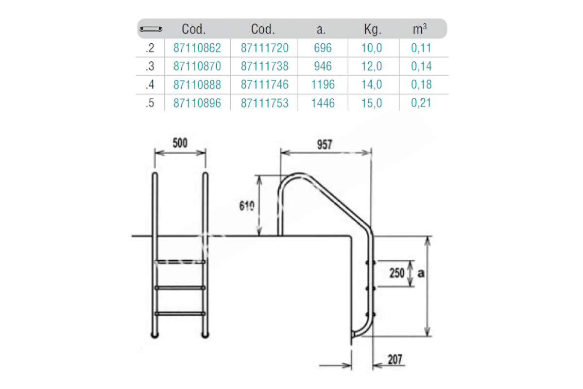 ИспанияПредназначена для удобного спуска и подъема из воды бассейна для монтажа на широкий борт. Она изготовлена из нержавеющей стали AISI-304 . Крепится лестница к полу с помощью закладных стаканов (поставляются в комплекте). Для крепления в отделанную поверхность дополнительно приобретаются Адаптеры для лестницы. Внизу лестница упирается в стену бассейна через резиновые заглушки. Ступени лестницы комплектуются пластиковыми антискользящими накладками.