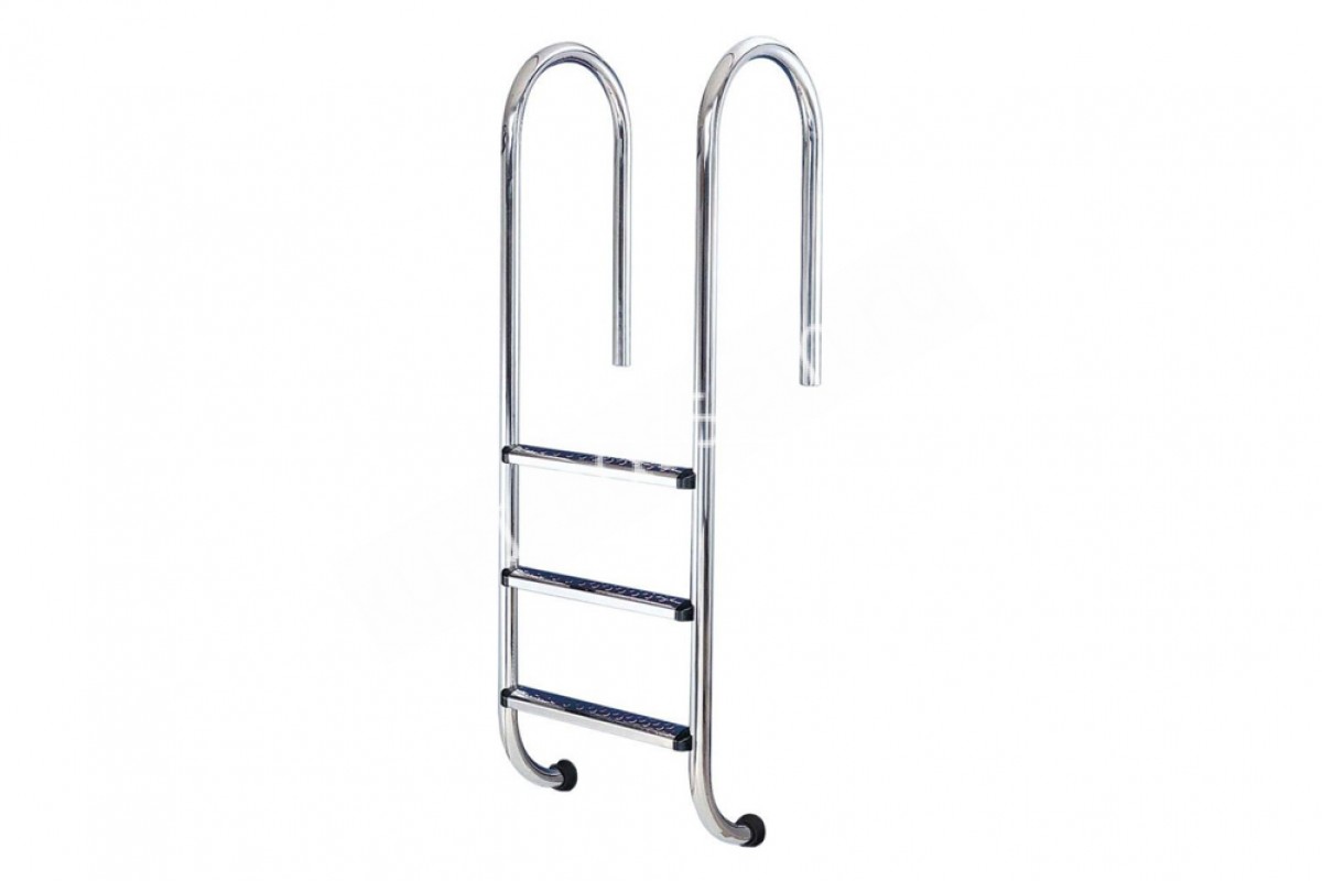 Предназначена для удобного спуска и подъема из воды бассейна для монтажа на узкий борт. Она изготовлена из нержавеющей стали AISI-304 . Крепится лестница к полу с помощью закладных стаканов (поставляются в комплекте). Для крепления в отделанную поверхность дополнительно приобретаются Адаптеры для лестницы. Внизу лестница упирается в стену бассейна через резиновые заглушки. Ступени лестницы комплектуются пластиковыми антискользящими накладками.