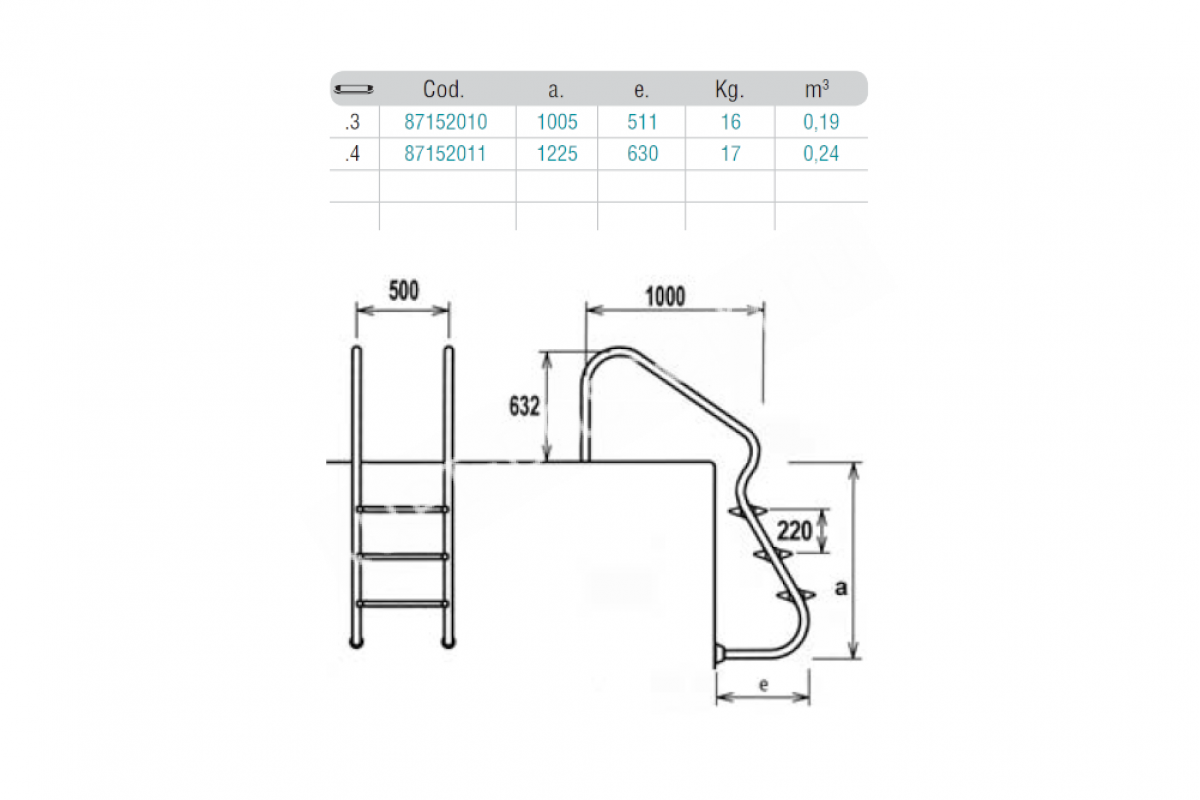ИспанияПредназначена для удобного спуска и подъема из воды бассейна для монтажа на широкий борт. Она изготовлена из нержавеющей стали AISI-316, благодаря чему может быть установлена в бассейнах с морской водой . Состоит из четырех двойных ступенек с противоскользящими пластиковыми накладками. Крепится лестница к полу с помощью закладных стаканов (поставляются в комплекте). Для крепления в отделанную поверхность дополнительно приобретаются Адаптеры для лестницы. Внизу лестница упирается в стену бассейна через резиновые заглушки.