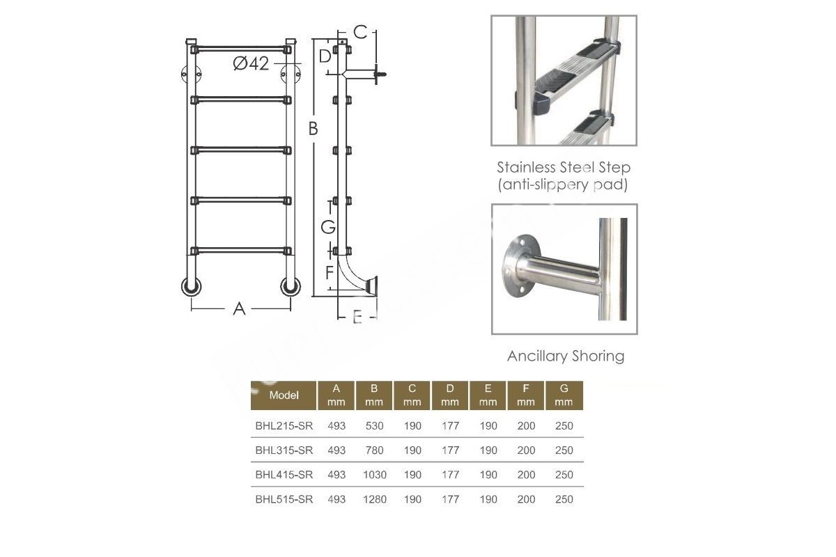 Лестница Aquaviva BHL515-SR оснащена пятью ступенями, которые обеспечивают легкий и безопасный доступ в воду. Ступени имеют специальное антискользящее покрытие, что значительно снижает риск падений и травм. Благодаря оптимальному расстоянию между ступенями, даже маленькие дети и пожилые люди смогут без труда пользоваться лестницей.