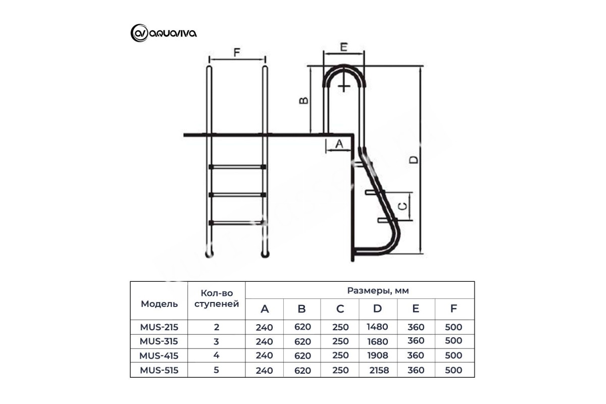 Установка лестницы Aquaviva MUS-215 не требует специальных навыков и инструментов. В комплект входят все необходимые крепежные элементы, что позволяет быстро и просто установить лестницу в любом бассейне. Ее конструкция разработана таким образом, чтобы обеспечить максимальную устойчивость и безопасность при использовании. Лестница идеально подходит для бассейнов с бортиками высотой до 1,2 метра, что делает ее универсальным решением для различных типов бассейнов.