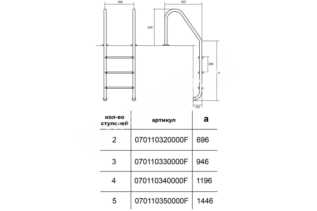 Лестница имеет две ступени, что делает её идеальной для узких бортиков бассейнов. Компактные размеры и продуманный дизайн обеспечивают комфортный доступ в воду, а также позволяют легко выходить из бассейна. Ступени лестницы имеют специальную антискользящую поверхность, что значительно повышает безопасность при использовании. Вы можете не беспокоиться о том, что ваши дети или гости могут поскользнуться, заходя или выходя из бассейна.