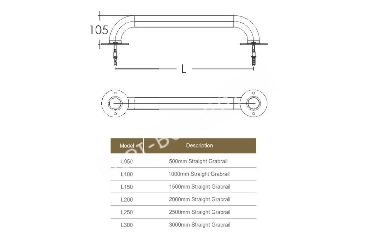 Диаметр поручня: 42 ммРазмер: длина 150 см х глубина 10.5 см