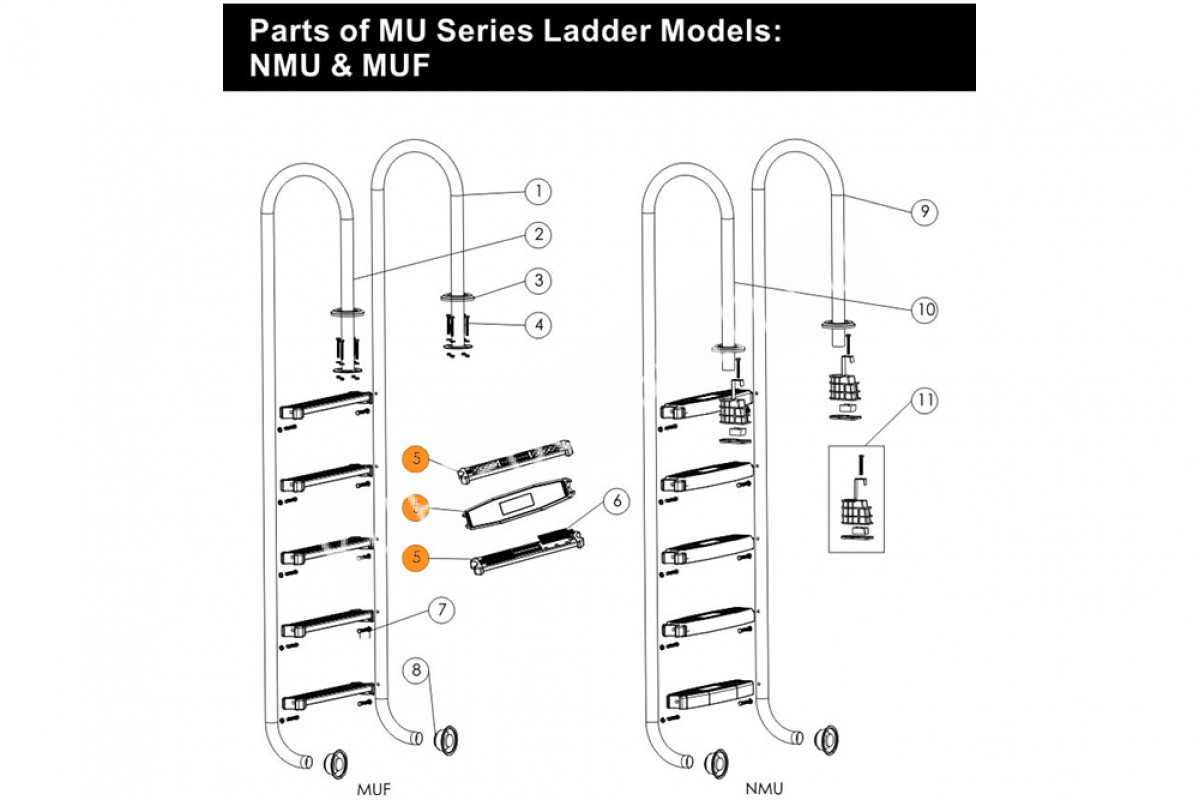 Поз. №5 - Ступень лестниц из нержавеющей стали (AISI304) с противоскользящей накладкой (универсальная для всех лестниц Emaux), Альтернативное название Ступенька к лестнице AquaViva с антискользящим ковриком 89070108