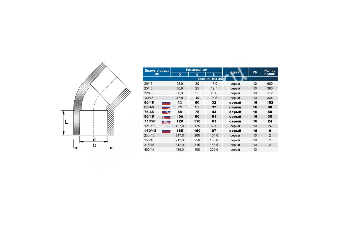 Угол клеевой 45° d40 PN16 AQUAVIVA