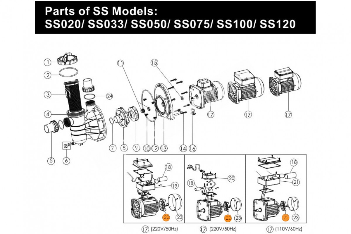 Поз. №22 - Вентилятор насоса SS020 - SS030 Emaux, Альтернативное название Крыльчатка вентилятора насоса Aquaviva SD/SQ/SS/ST 20-33 01031026